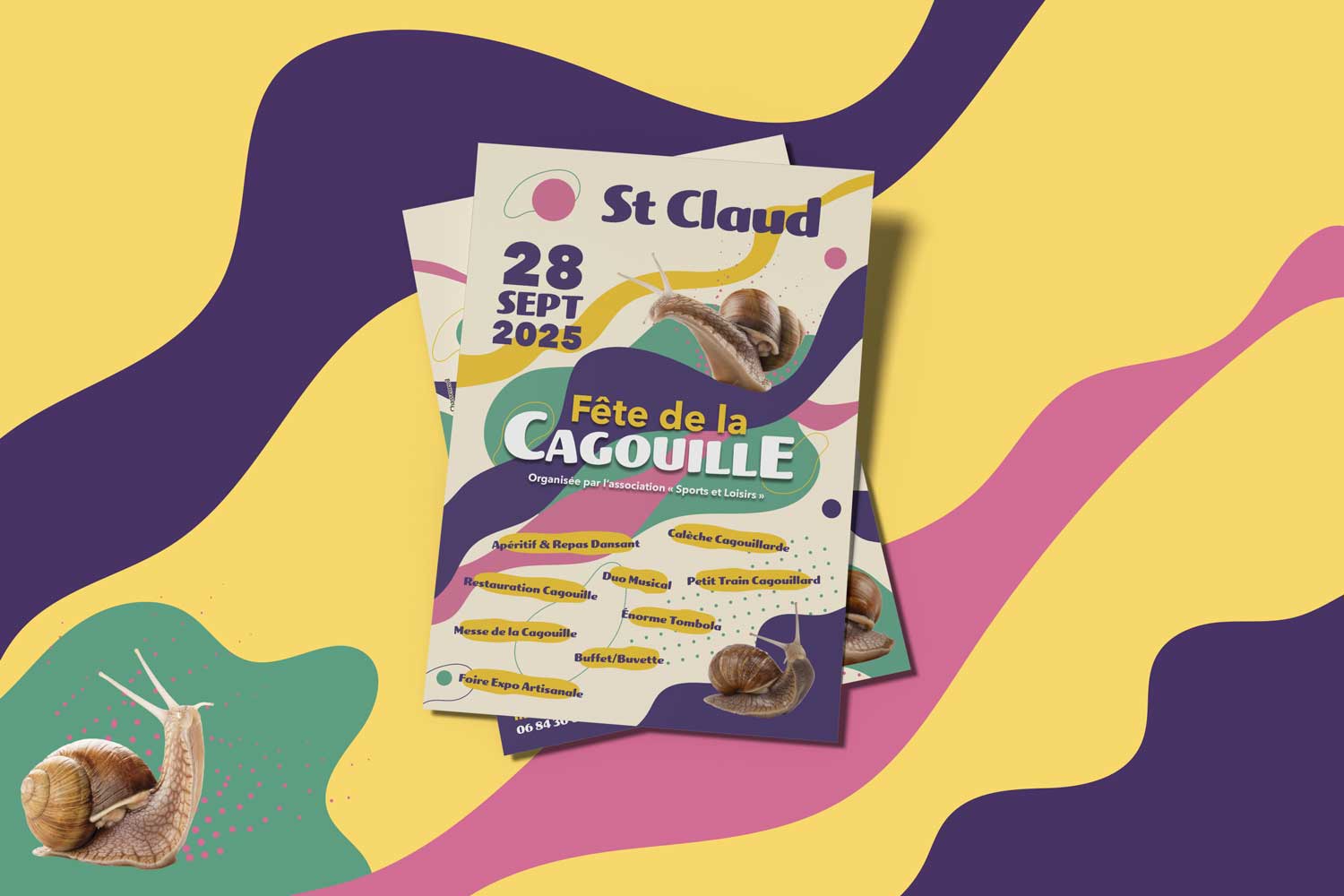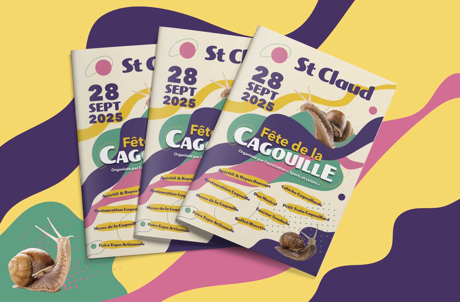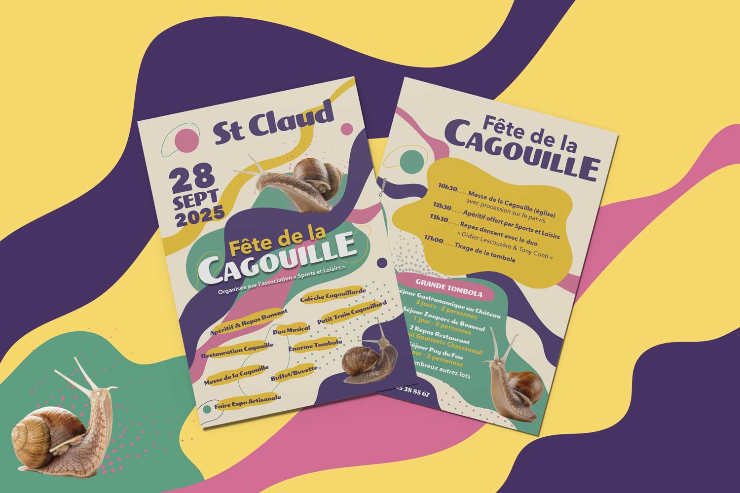 Depuis 2022, l’association « Sports et Loisirs » de St Claud fait confiance à Est Charente pour créer l’ensemble de la communication de son événement annuel : la Fête de la Cagouille.