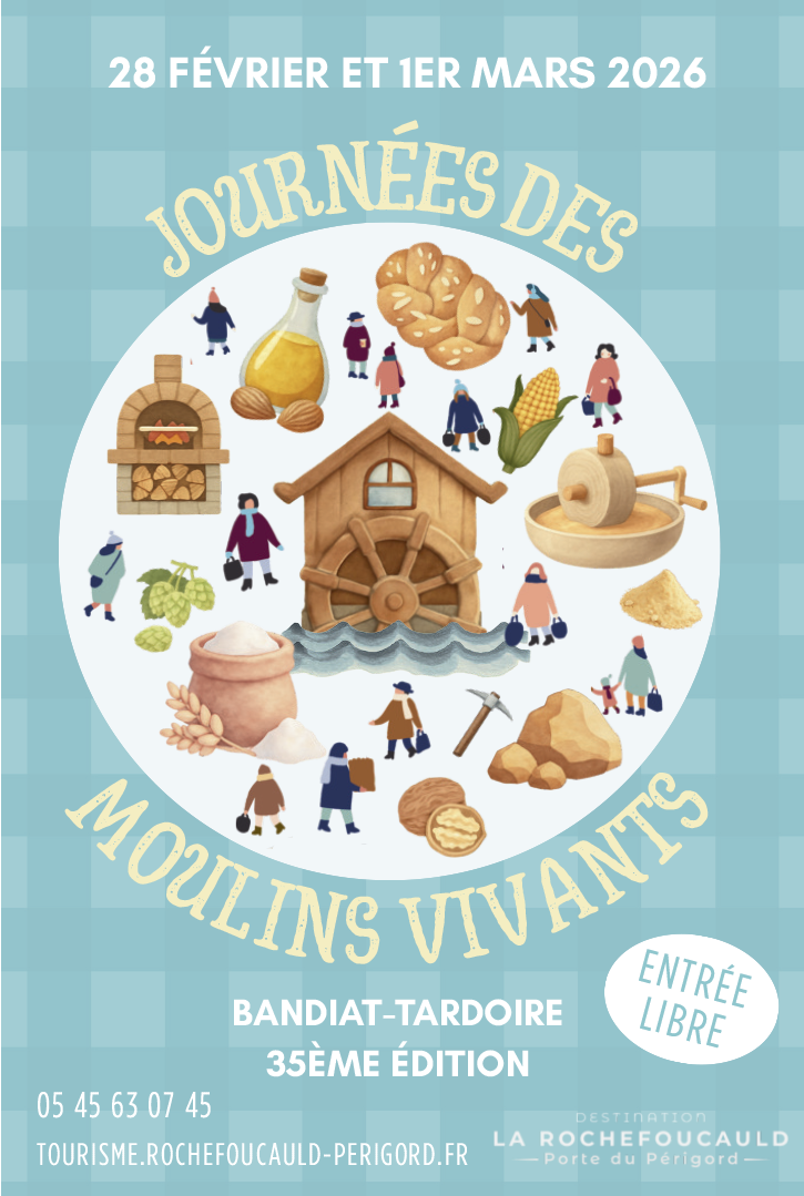 Ils ont façonné les paysages, rythmé la vie économique et sociale des vallées, et continuent aujourd’hui de faire battre le cœur du patrimoine local. Les moulins des vallées du Bandiat et de la Tardoire seront à l’honneur à l’occasion des Journées des Moulins Vivants, qui se dérouleront les 28 février et 1er mars 2026.